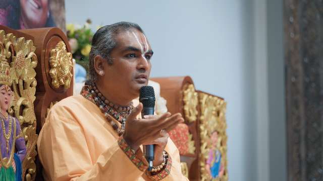 Guruji explores the essence of devotional life, emphasizing humility, love, unity, and heartfelt chanting. He warns against ego and superficiality, highlights the power of selfless service, and shares inspiring stories of transformation through bhakti. Guruji underscores the guidance of the Guru and the teachings of Sri Ramanujacharya, encouraging daily practice and ongoing self-improvement on the path of devotion for spiritual realization.