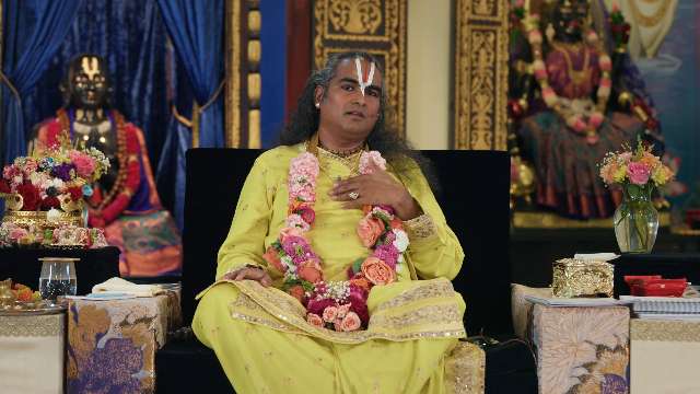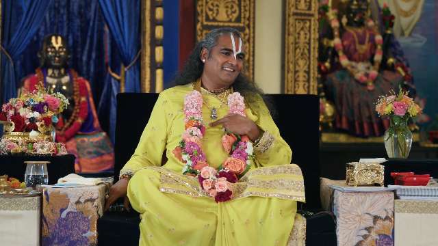 Guruji begins with a devotional chant, invoking the Divine. He contrasts fear-based, fake happiness with true joy born from the love already within. By offering every action as prasad, life becomes an expression of grace. Through the story of Ram Prasad Singh, he shows how constant loving remembrance makes God tangibly present. Guruji urges choosing love over fear in every action and giving one’s whole heart with full presence.